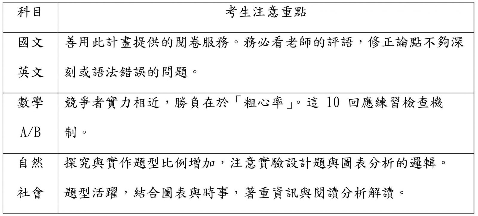 自然組:國綜、國寫、英文、數學A、自然和社會(共五科/六項) 🅱