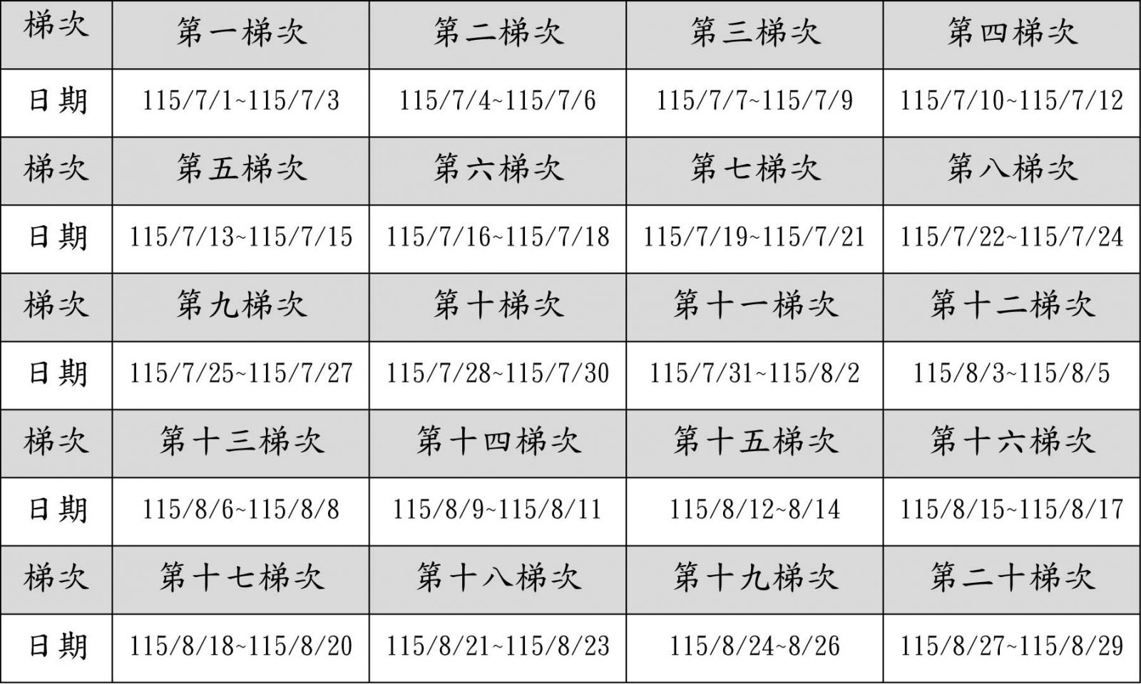 活動日期:115年7月1日(三)~115年8月29日(六)[每三天一個梯次]